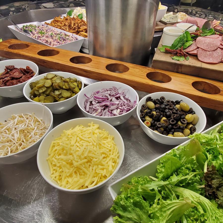 - A complete selection of fresh salads and dressings