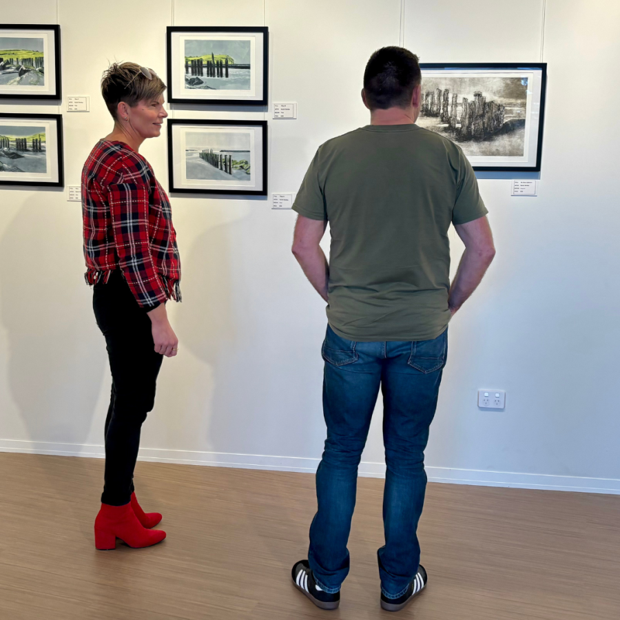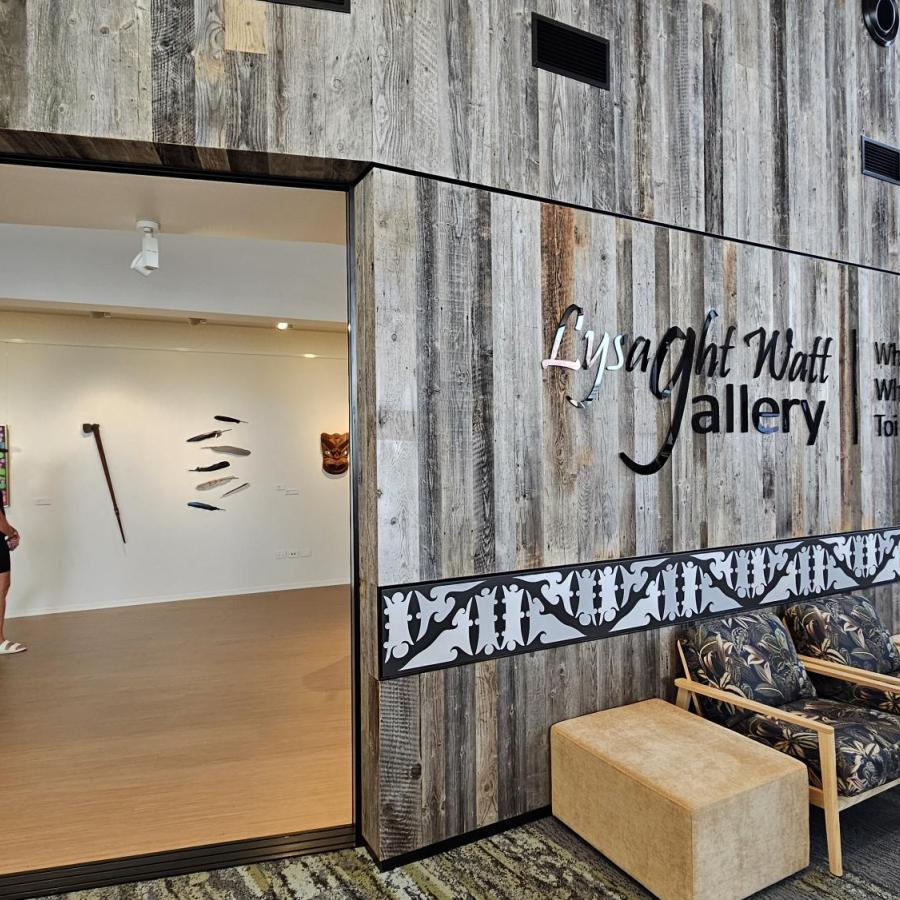 A community art gallery is situated inside the Te Ramanui o Ruapūtahanga building in Hāwera, presenting curated exhibitions that change monthly.