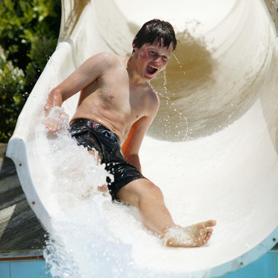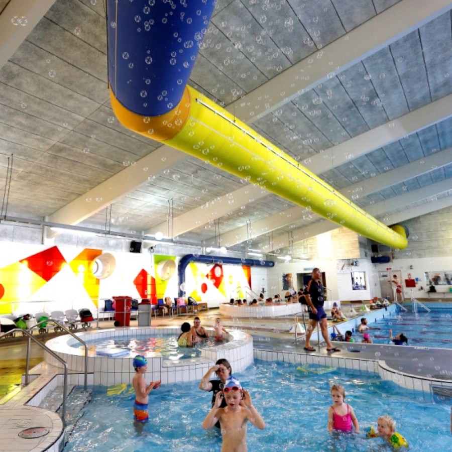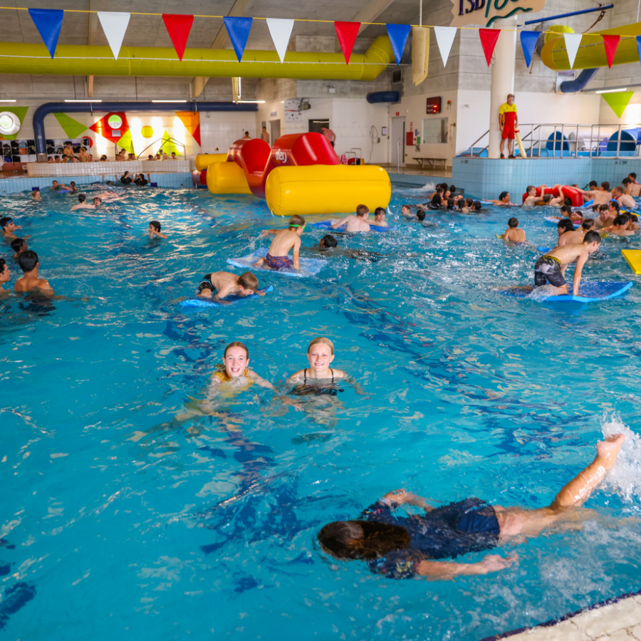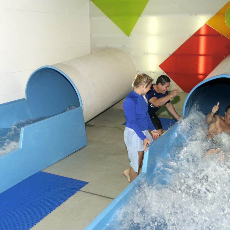 Main pool - Wave machine, water features, eight training lanes, tarzan rope, inflatable toys, temperature 28 degrees.