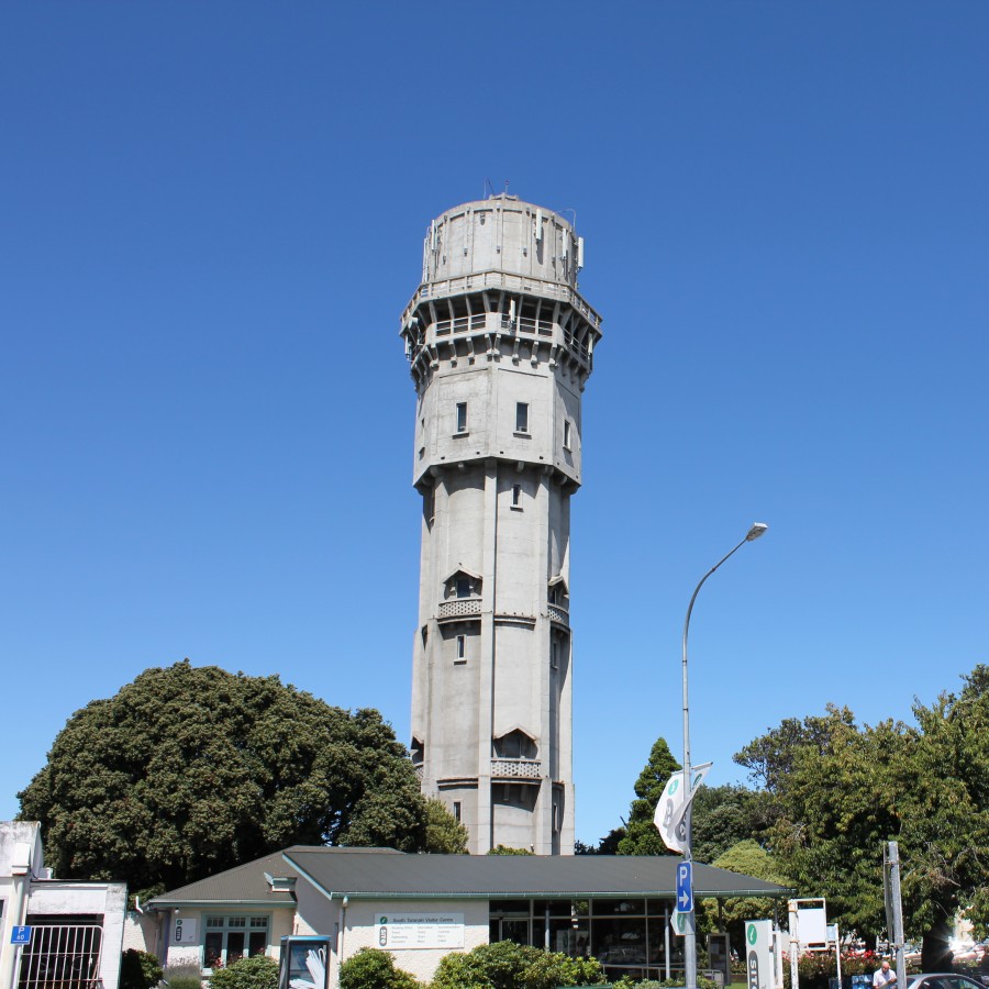 The Hāwera Water Tower dominates the urban landscape and provides a central landmark and navigation point for visitors to the town.