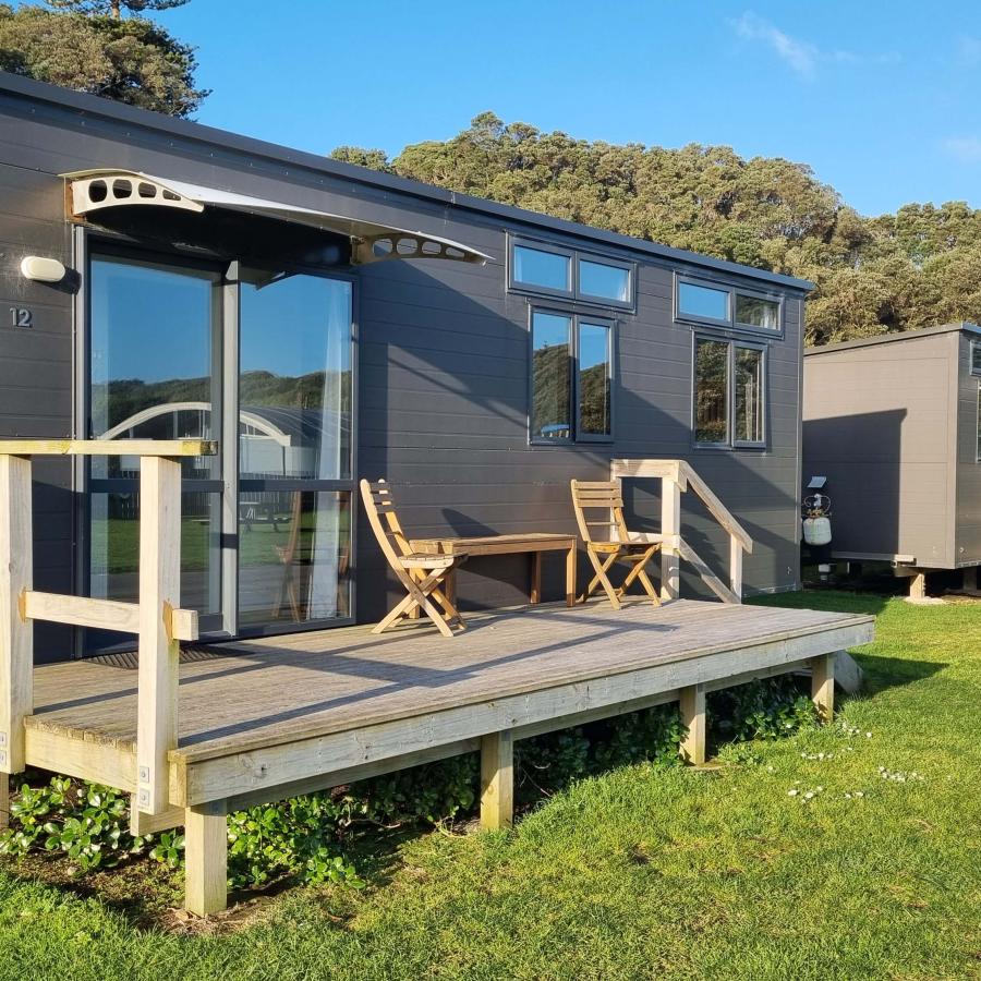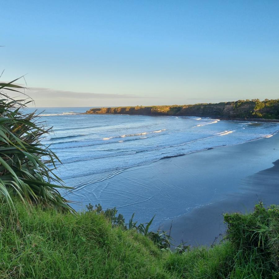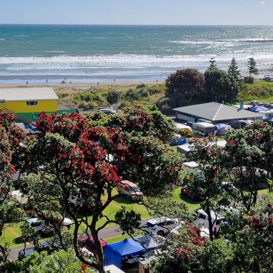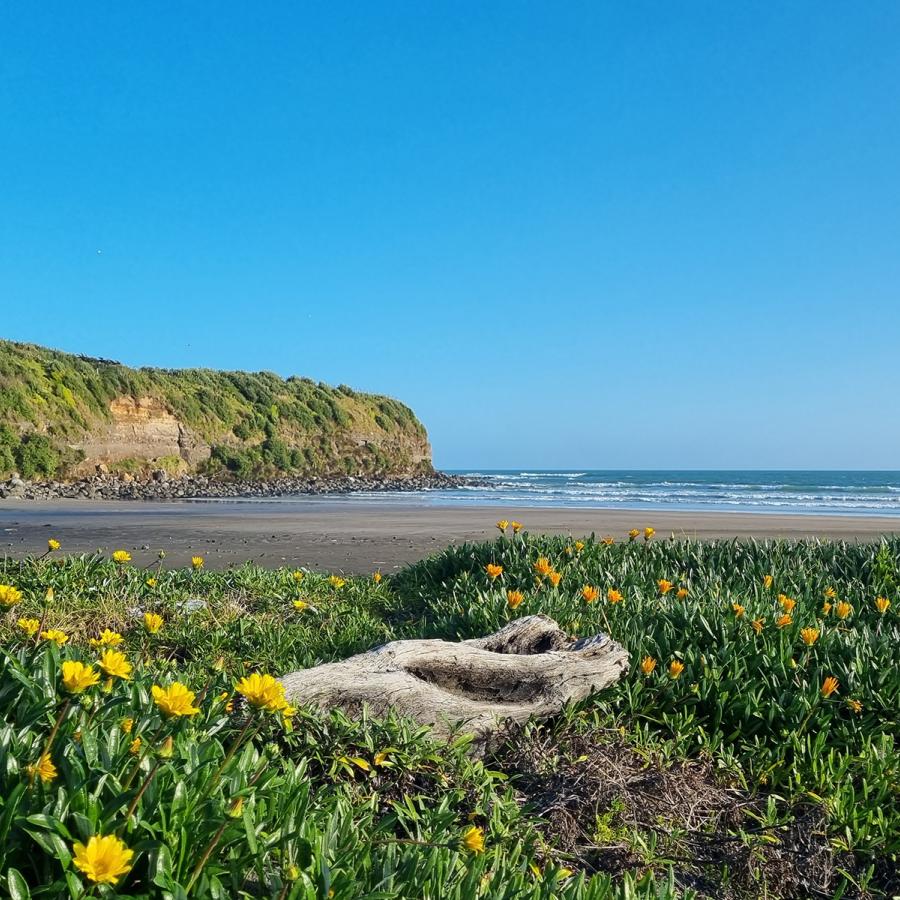 Opunake Beach Kiwi Holiday Park is an ideal family park, unique beachfront location on a safe surf patrolled beach (over summer) in a sheltered sandy bay. Great fishing & surfing with children's playground.